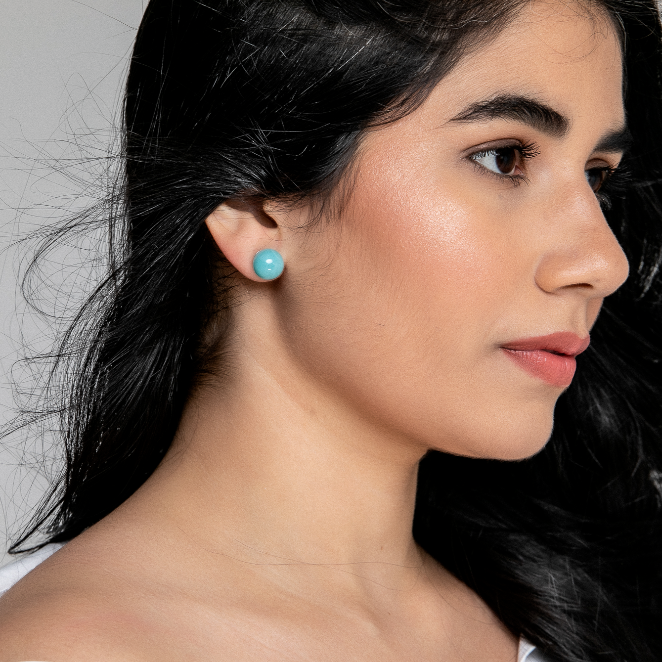 Pep up your wardrobe with the Cecile Beads Studs! These handmade Larimar blue studs are a showstopper, perfect for making an entrance and turning heads. Perfect for adding a pop of color to any outfit, these round beauties will have you standing out in every room you enter.