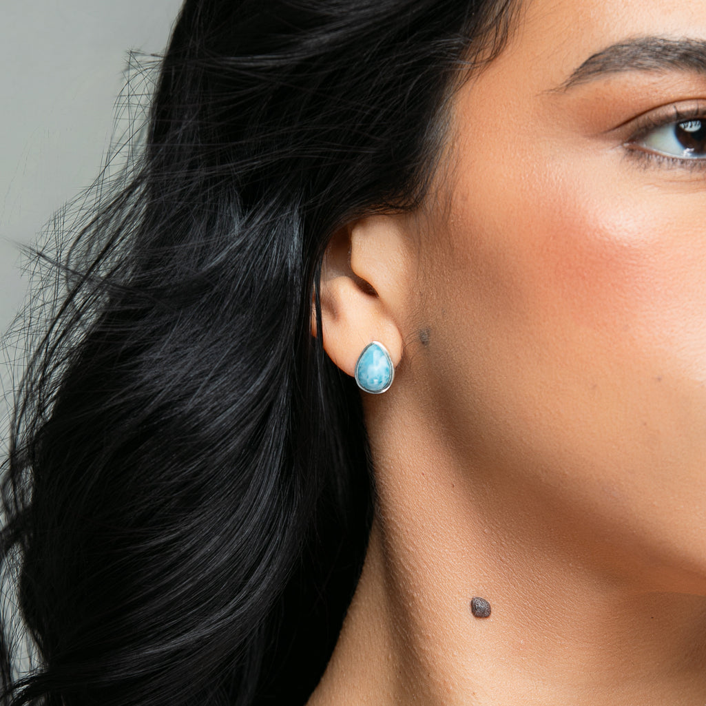 Add a touch of whimsy to your look with our Larimar Studs Remi Pear Petite earrings. Made with beautiful Larimar stones, these studs are perfect for adding a pop of color and style to any outfit. Get ready to turn heads and make a statement with these playful and unique earrings!