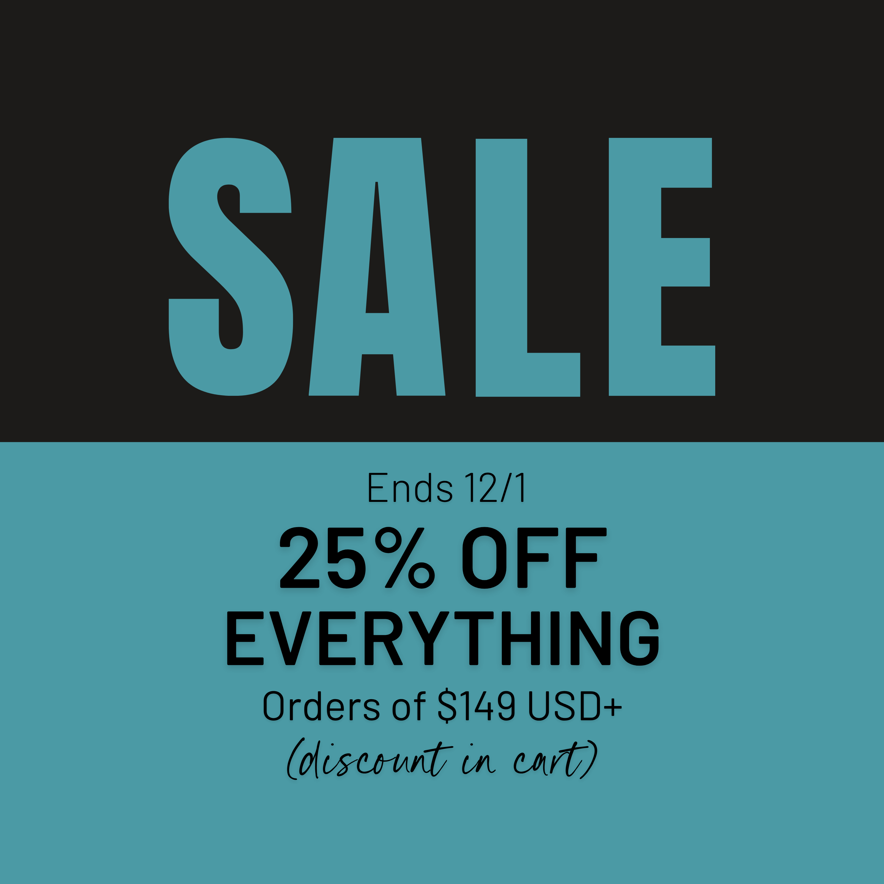 25% Everything • $149+ • No code • Ends Dec 1st