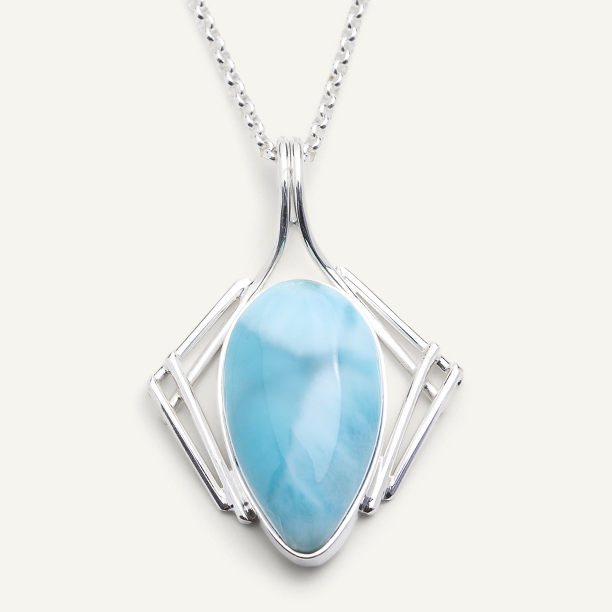 With silver wings that echo angels and the carefully sculpted blue Larimar Stone, our Larimar Pendant Angela stands out on its own with a striking beauty that makes it impossible to go unnoticed.