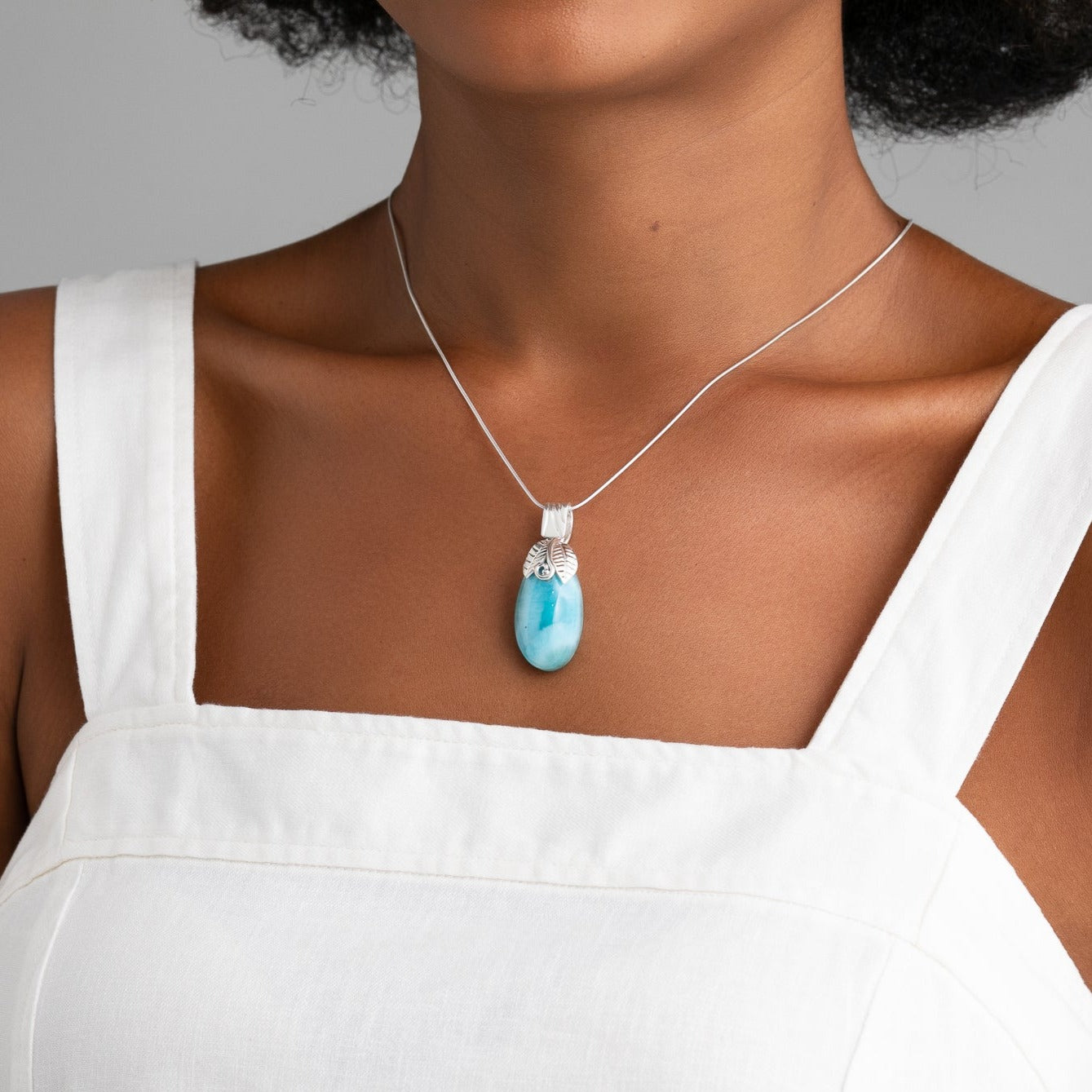 Inspired by nature, this drop is full of leaves and swirl shapes. Naked Larimar stones touch your skin to elevate your spirit and reveal your uniqueness in new ways. Grab the one that speaks to your soul before they're all gone.