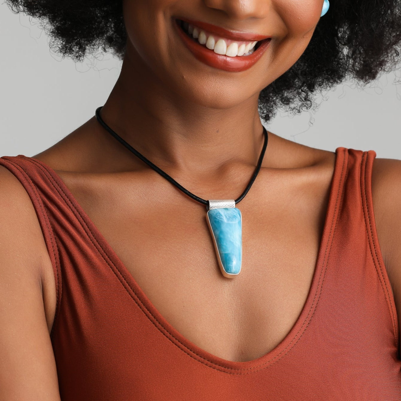 Have you ever landed your eyes on something as beautiful as the Larimar Pendant, Victoria? We can barely take our eyes away from this one.