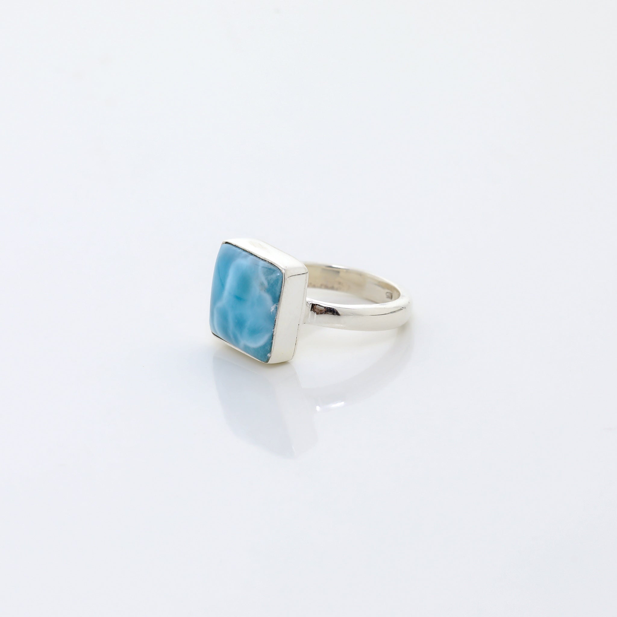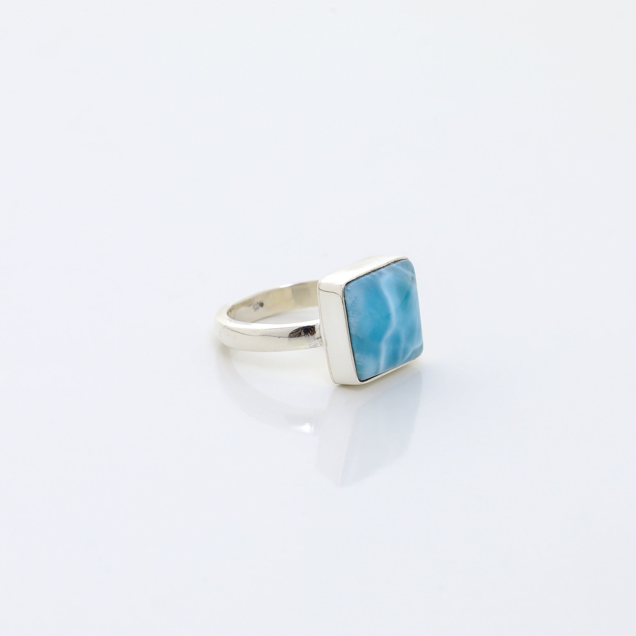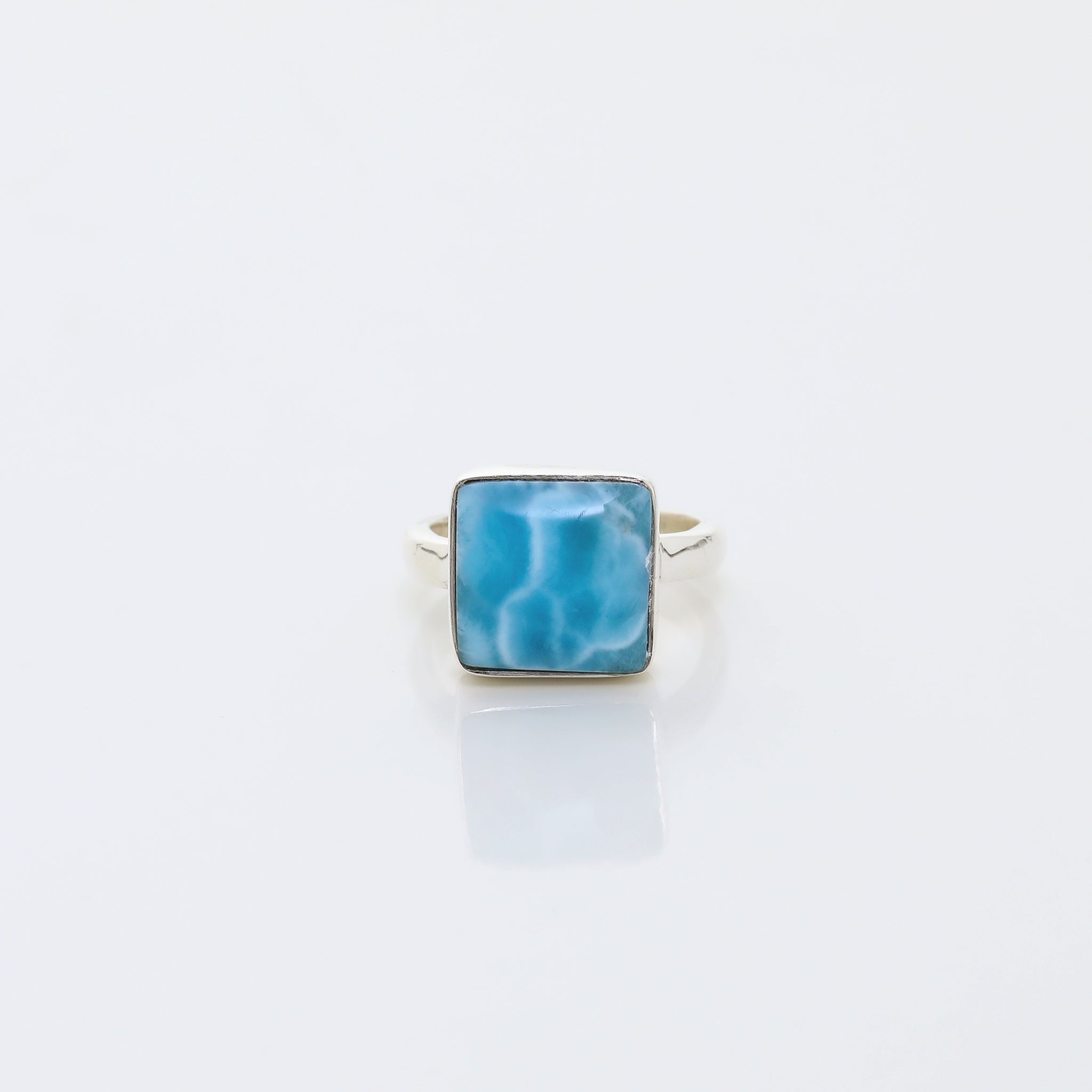 Introducing the Larimar Ring Fairy - a whimsical square ring that'll sprinkle magic wherever it goes! This delicate beauty features a stunning Larimar stone, known for its calming and soothing properties. Add this unique and enchanting piece to your collection for a touch of fairy charm.