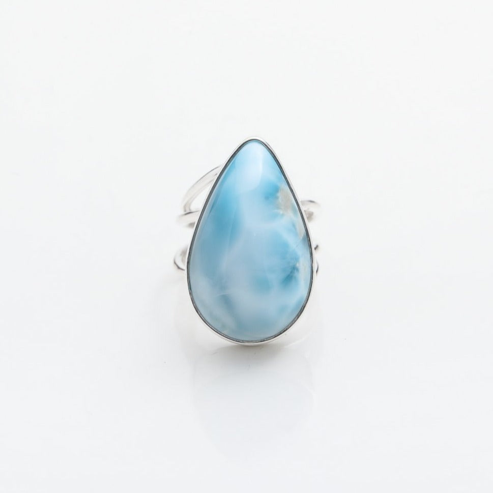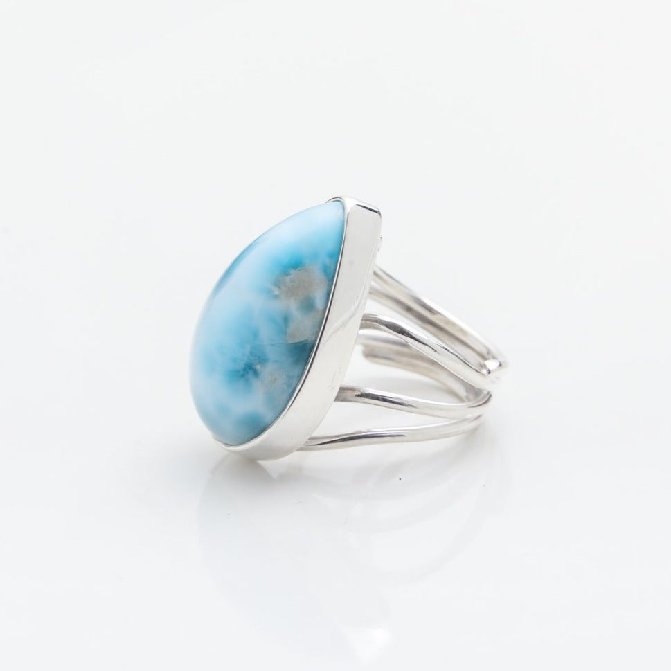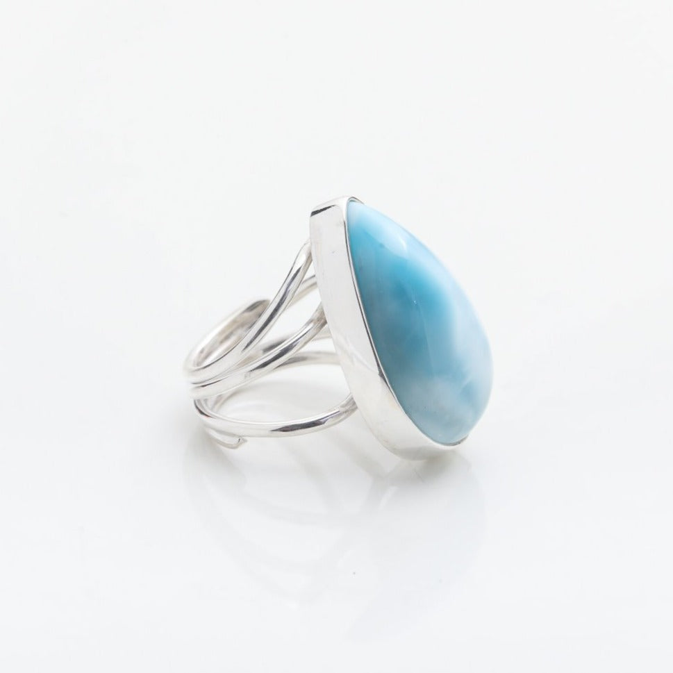 The Larimar is a stone that can only be found in Dominican soil, bound to surprise you with its breathtaking blue patterns, as its portrait in our Larimar Ring Violet that enhanced by a modern silver setting makes the gemstone look even more stunning!
