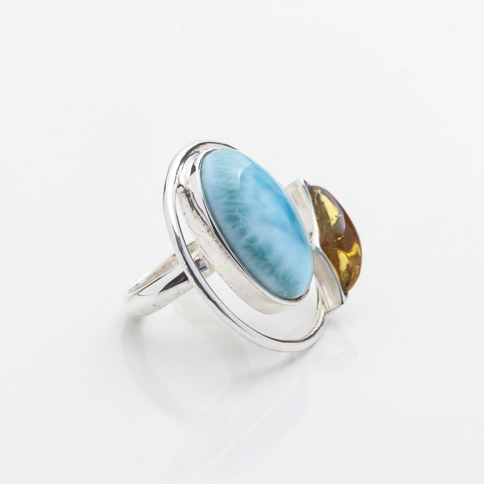 Larimar Amber Ring Isleña