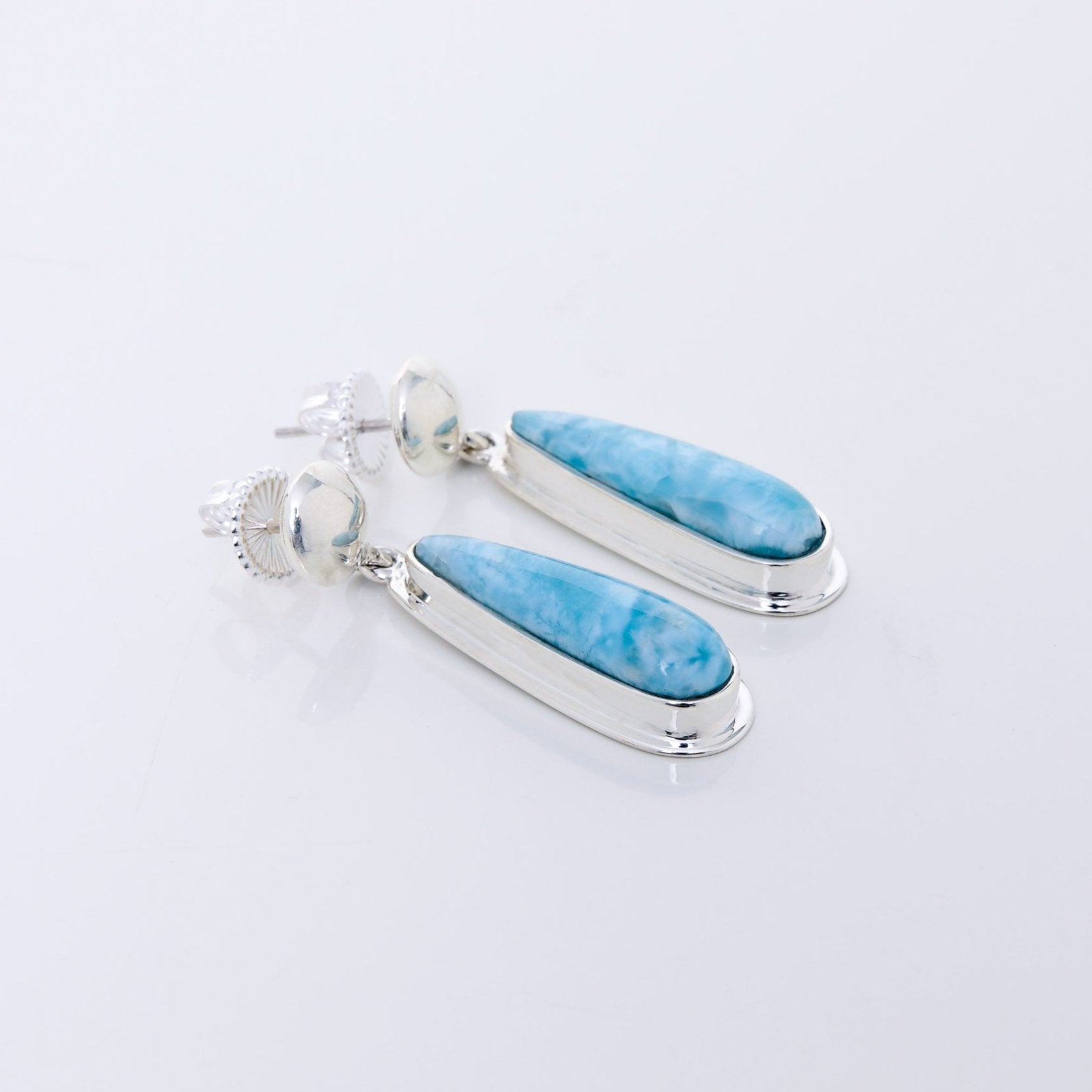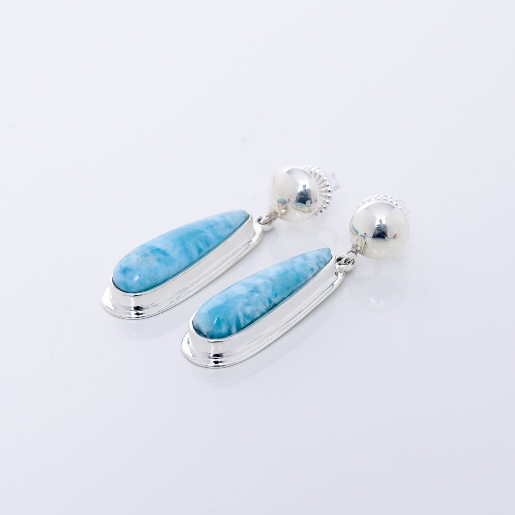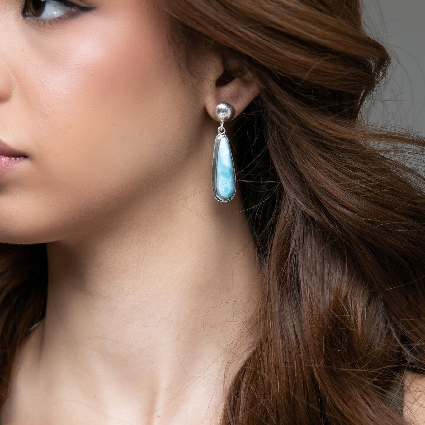 These Grecil drop earrings, named after the Greek Goddess of love, add a touch of elegance and charm to any outfit. Crafted with stunning Larimar stones, they are sure to be a conversation starter.