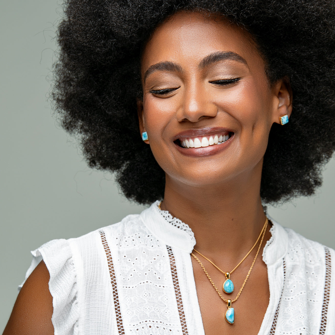 Our Larimar gold vermeil jewels have a thick layer of 18k solid gold on 925 silver that lasts longer. Not to be confused with gold-plating or gold-filled. With gold vermeil, you get the same look and feel of gold jewelry but at a fraction of the price.