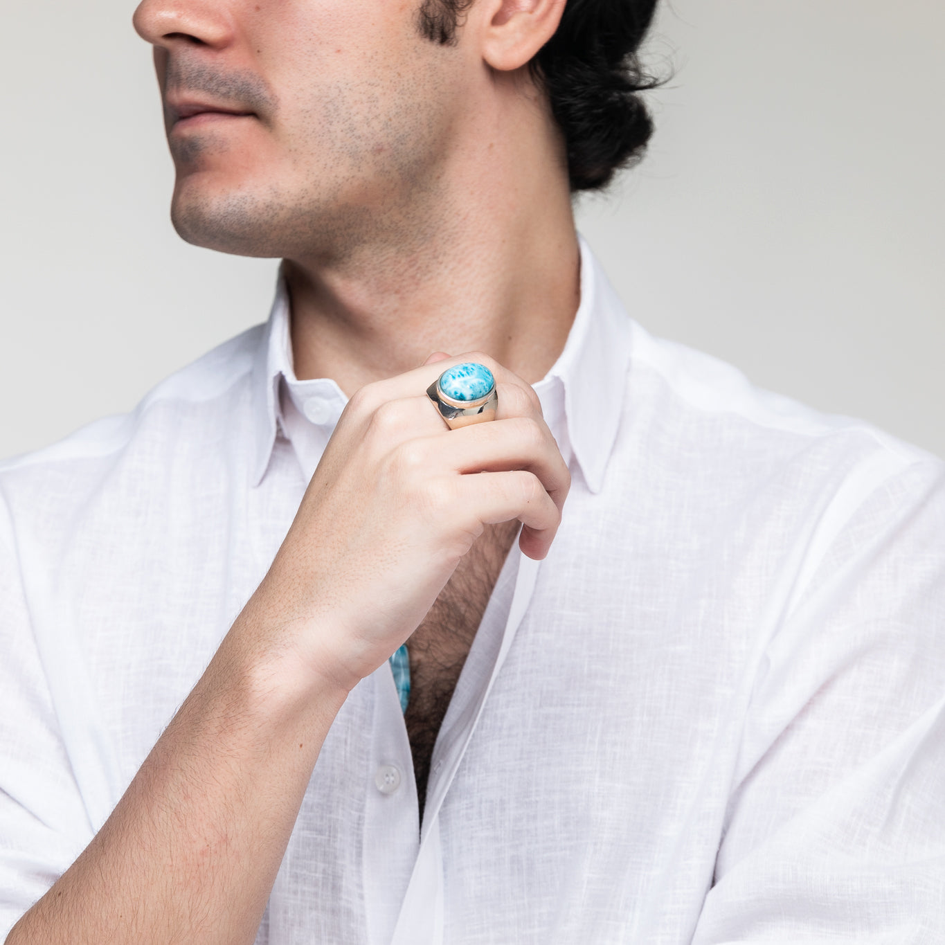 Classic, stylish & bold. 100% artisan made, the Pablo Larimar ring will turn into the IT accessory you won't leave behind.