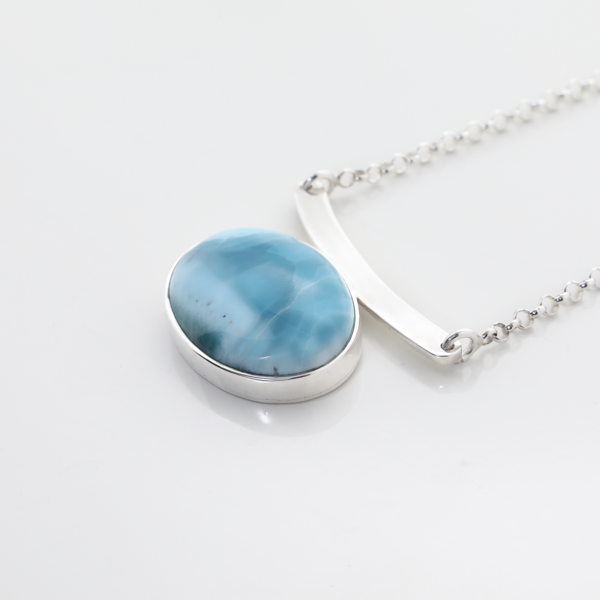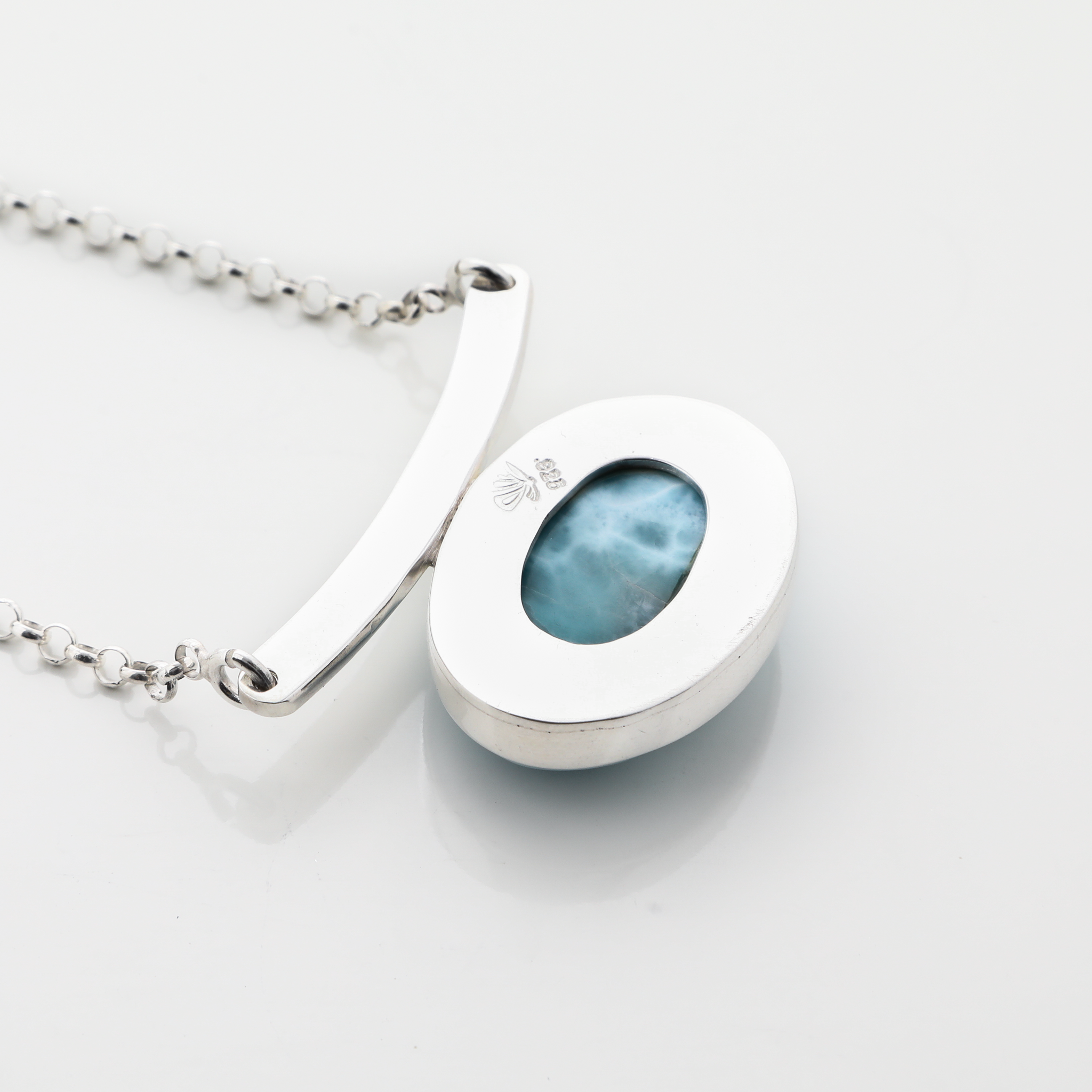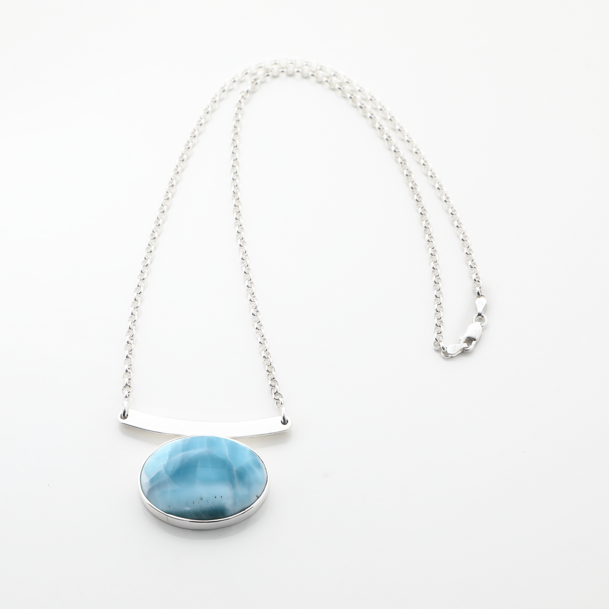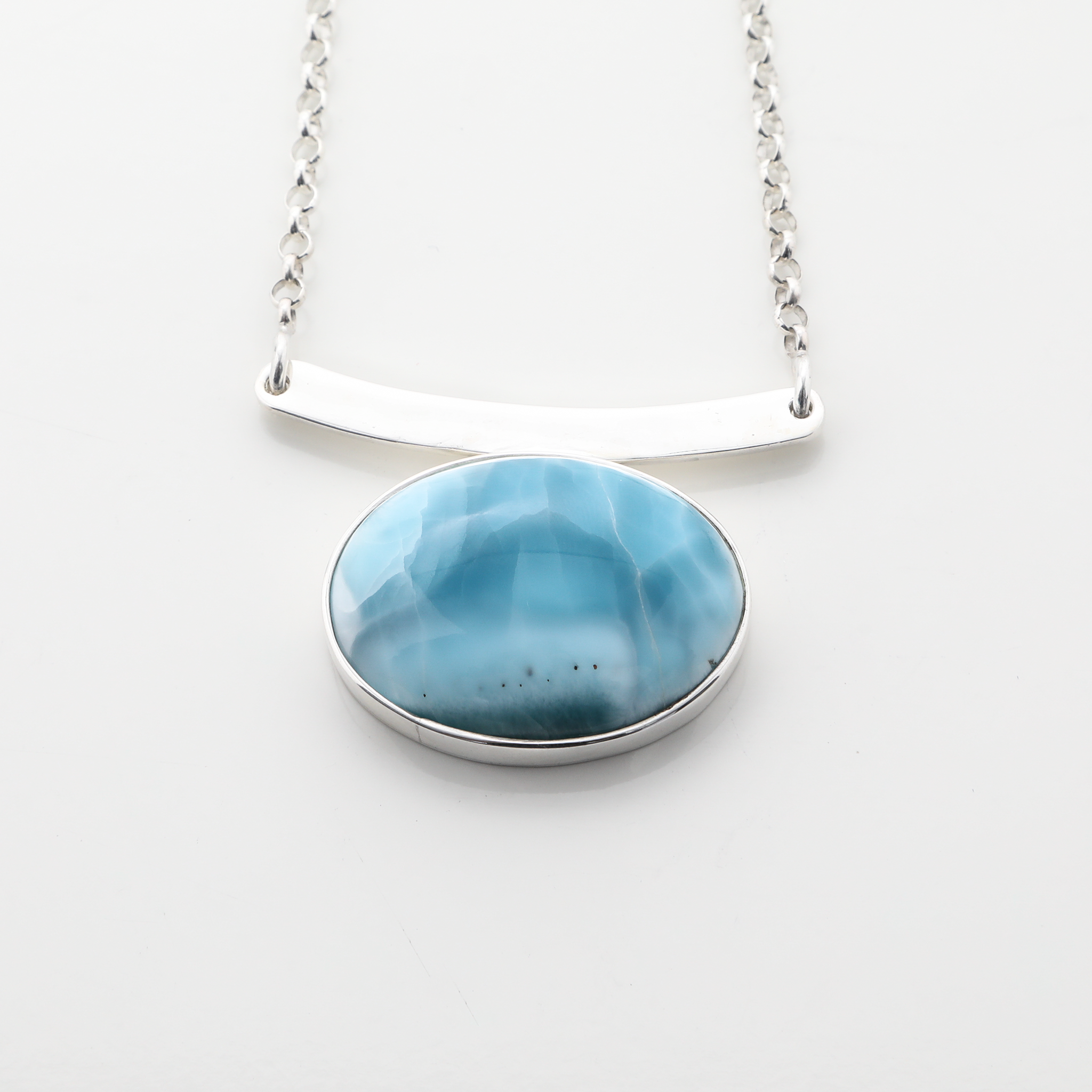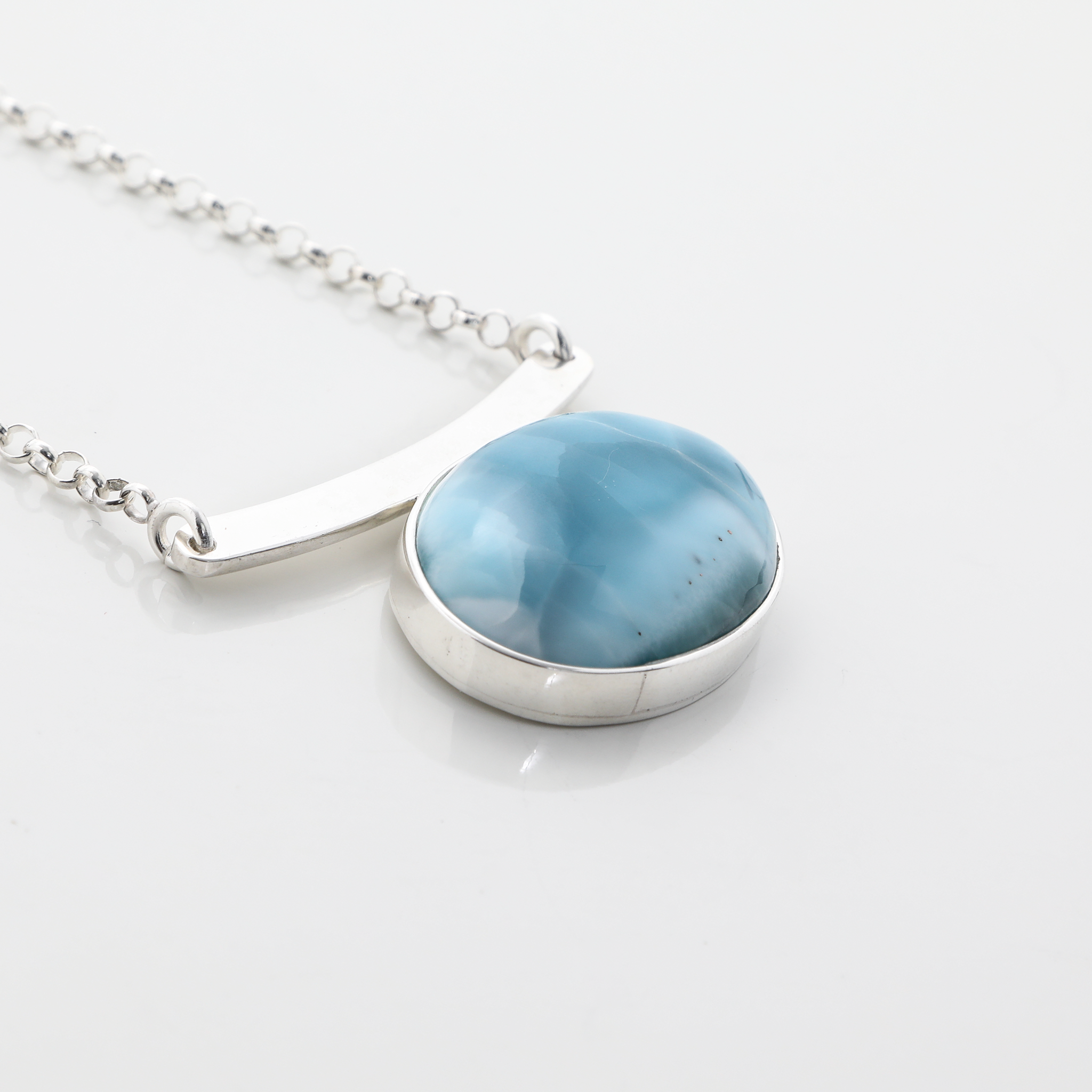 Be bold and beautiful with this Larimar Darcy Necklace, made with a brilliant blue stone and a unique design. Whether you're looking for a statement piece or something to wear every day, this is the necklace for you.
