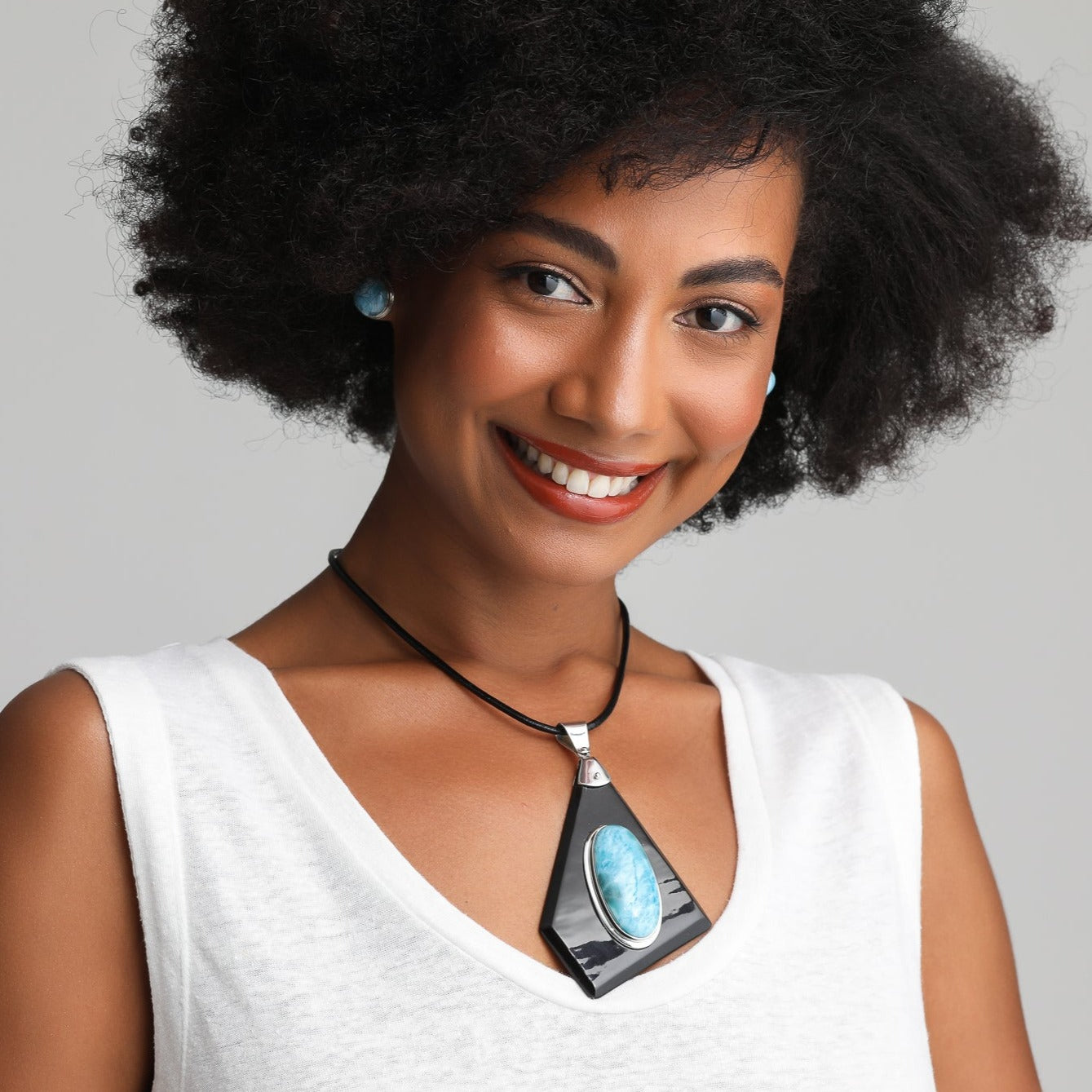 Our inspiration comes in blue hues, from the rareness of the Larimar stone and its unique-bold patterns.