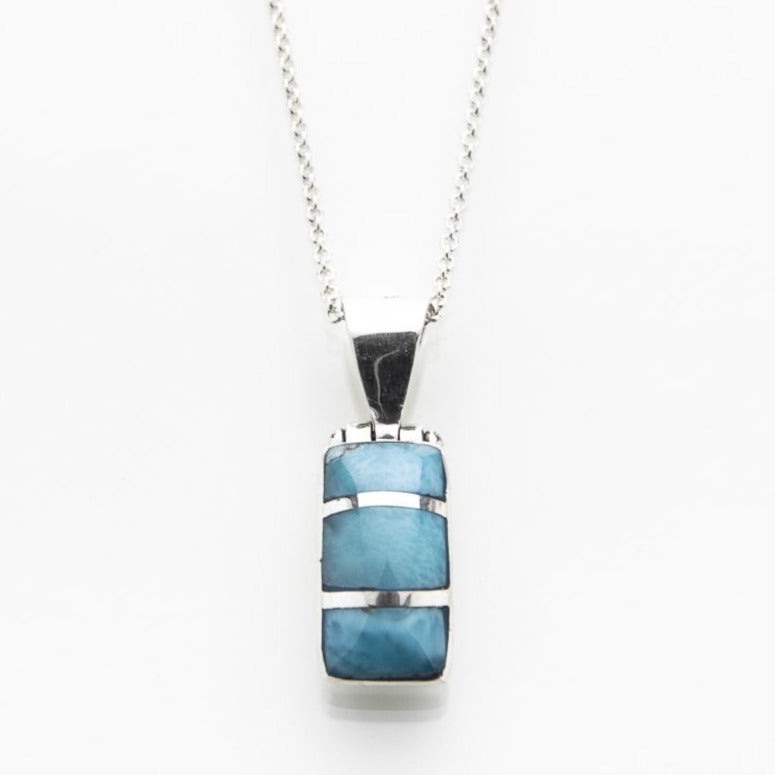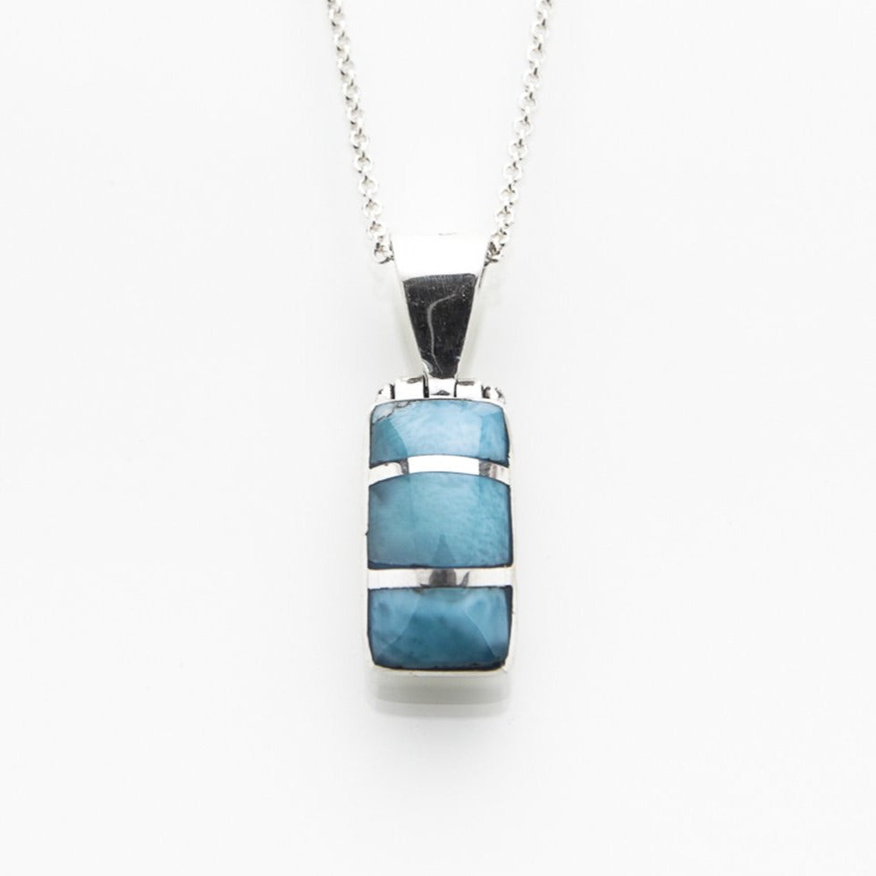 Larimar Pendant, Silver Inlaid Craftsmanship