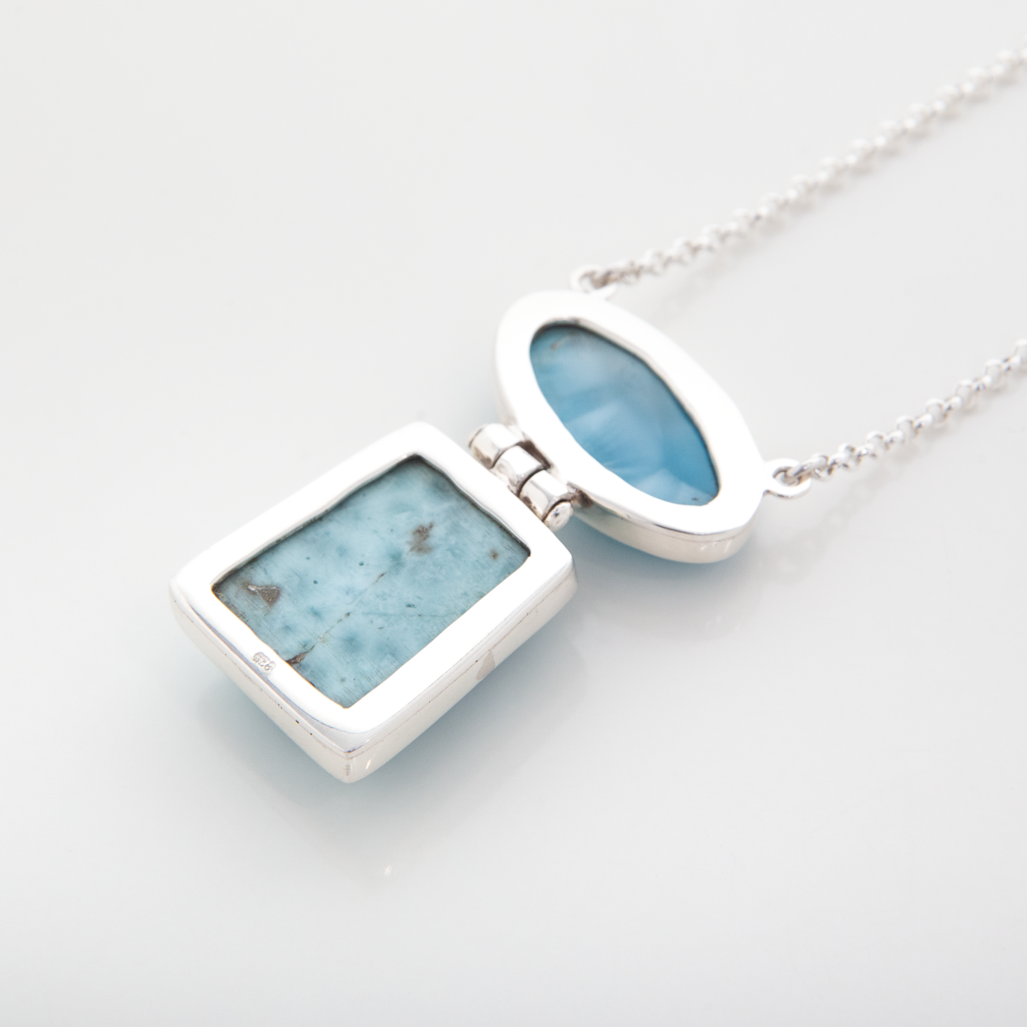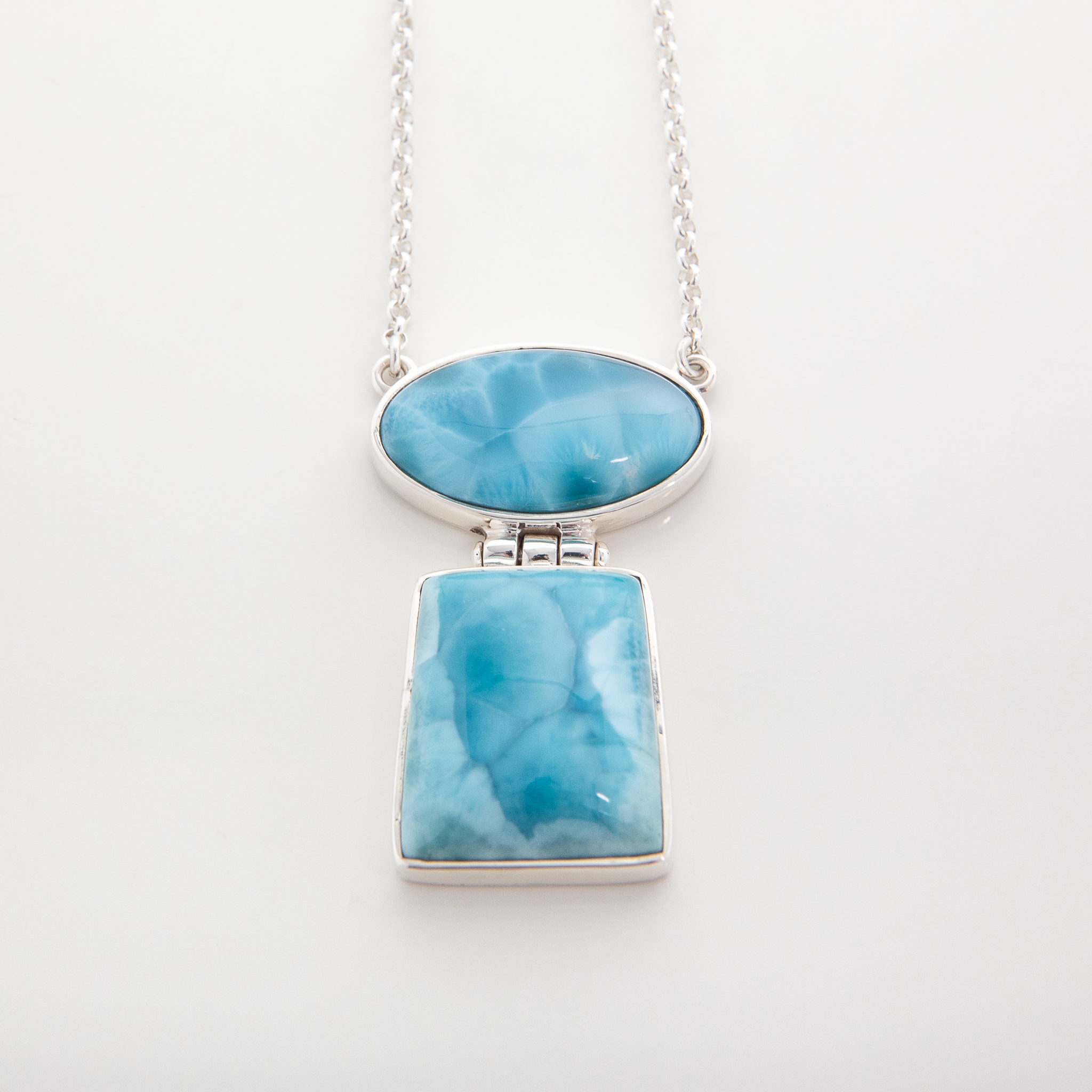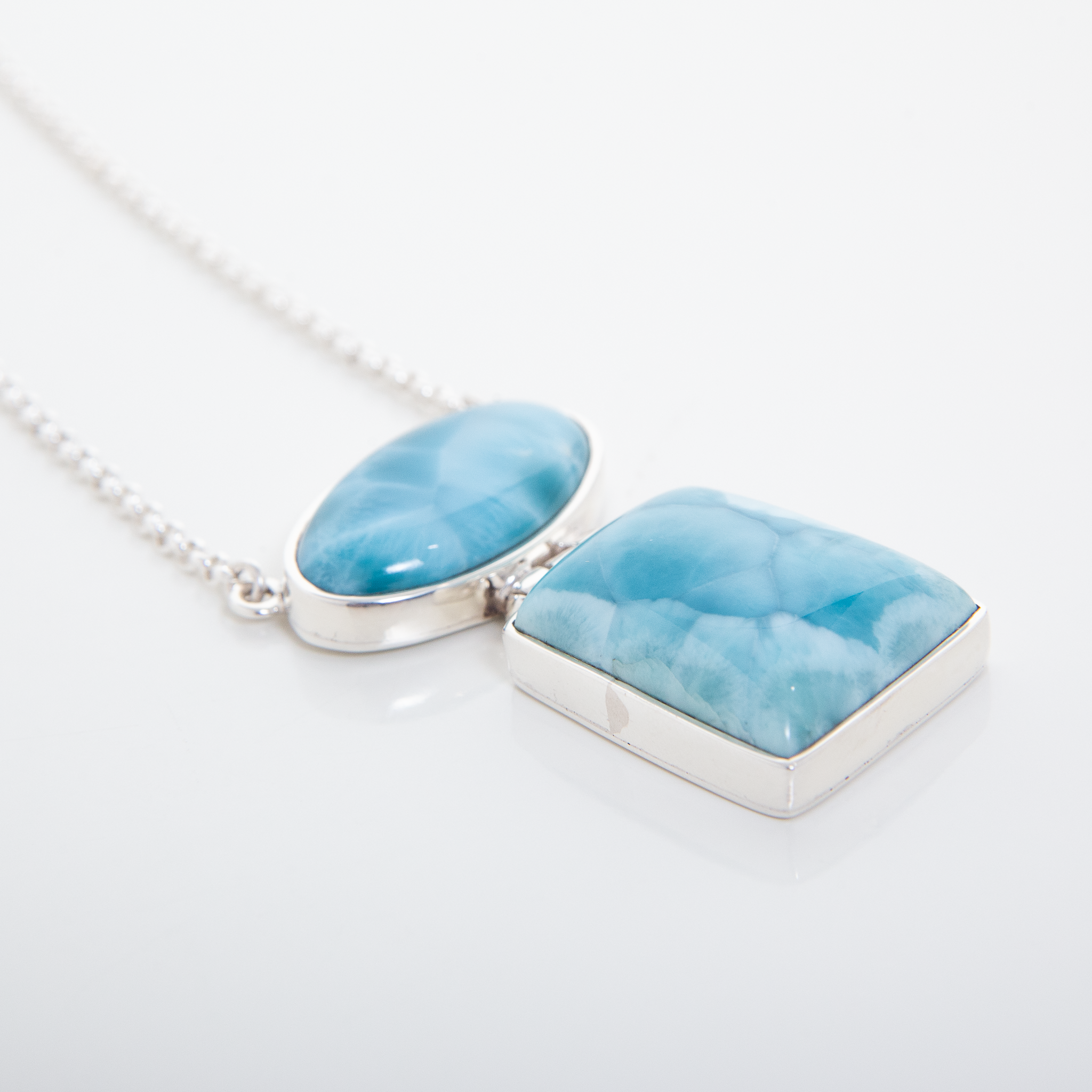 Stand out from the crowd with the Larimar Necklace Clara. Its unique double stone design adds a touch of quirkiness to the classic design. Not just your average necklace!