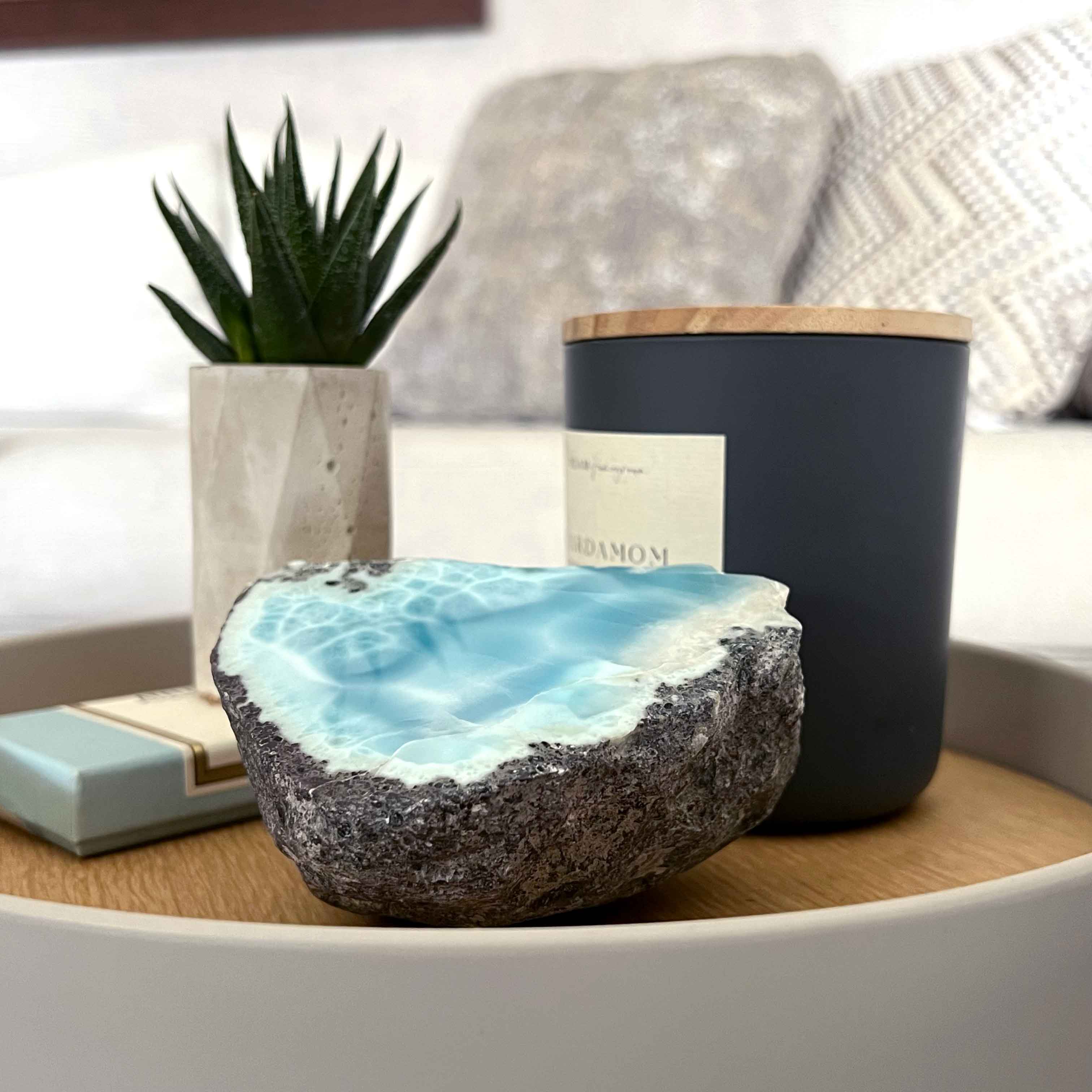 Our inspiration comes in blue hues, from the rareness of the Larimar stone and its unique-bold patterns.