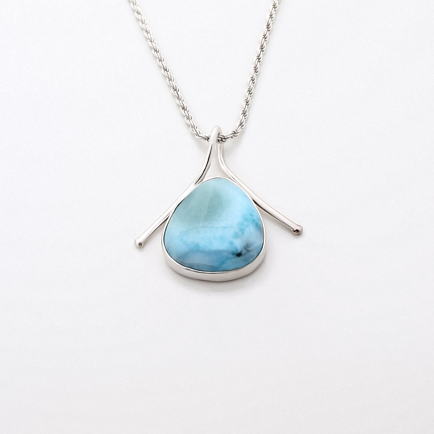 Unleash your inner mermaid with our Larimar Pendant Holly! This unique piece features a shimmering Larimar stone, known for its calming and healing properties. Holly design adds a touch of whimsy to any look. Dive into this one-of-a-kind accessory today!