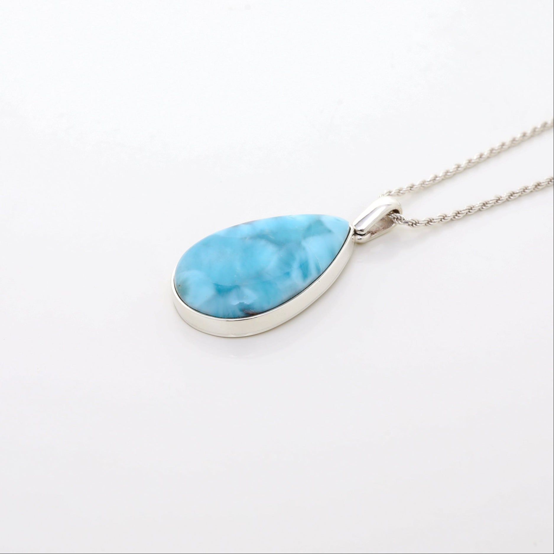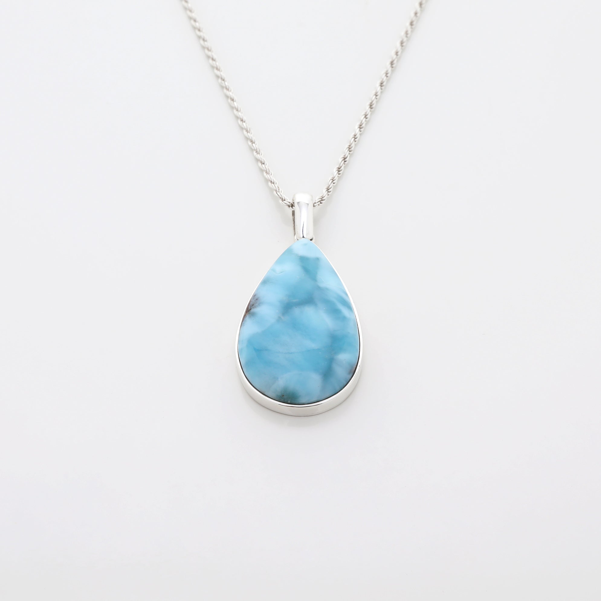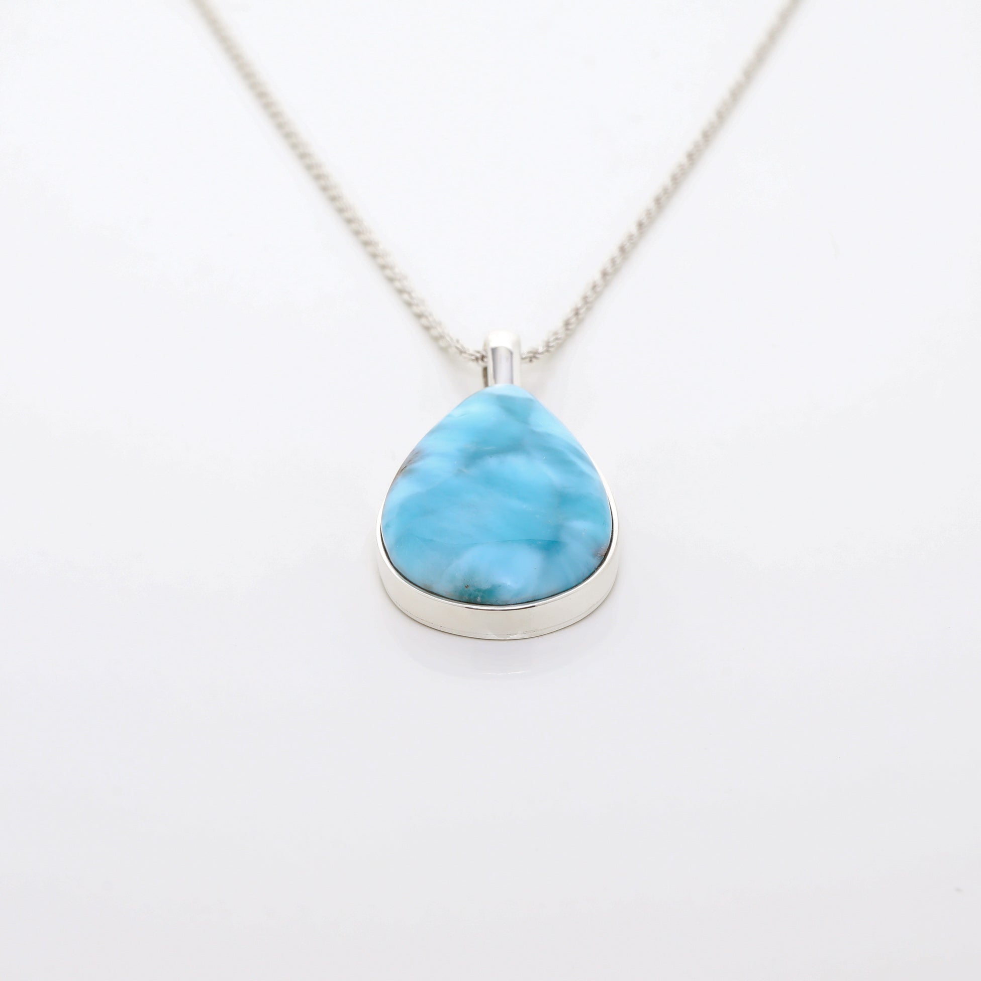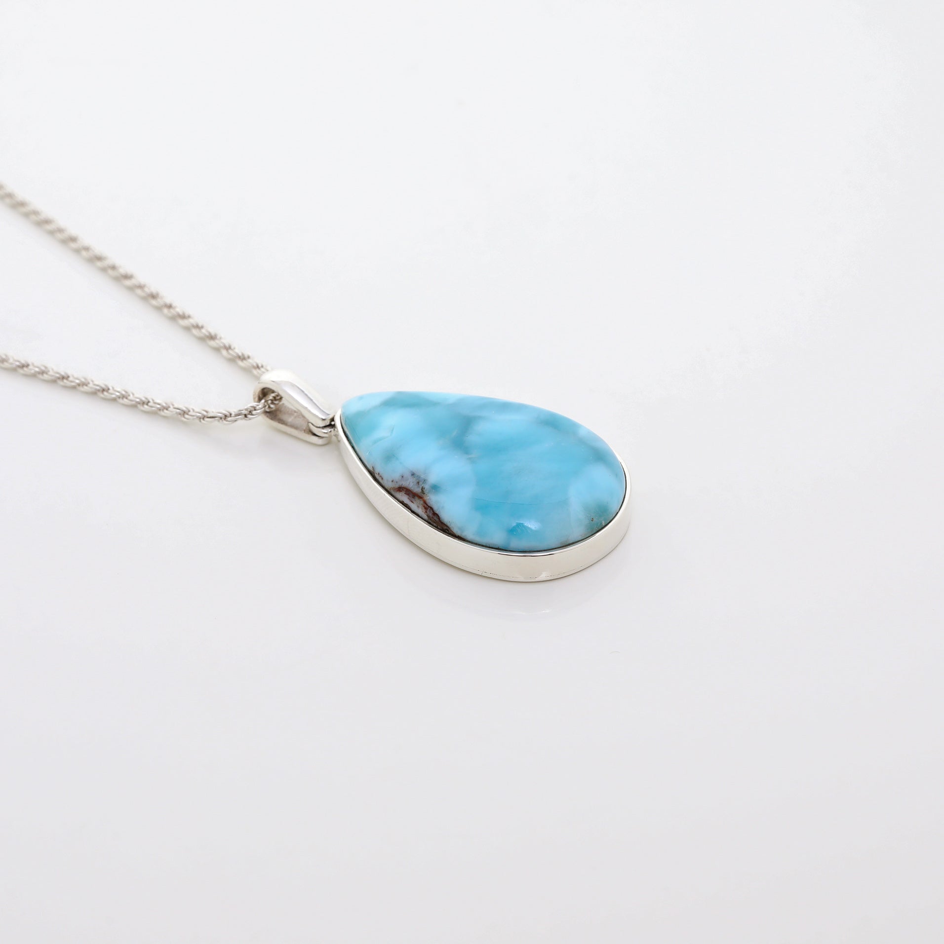 Introducing the Larimar Pendant Lenora! This beautiful pendant features a unique larimar gemstone that radiates a calming energy. With its eye-catching design, it's sure to be a conversation starter. Add a touch of elegance and tranquility to any outfit with the Larimar Pendant Lenora.