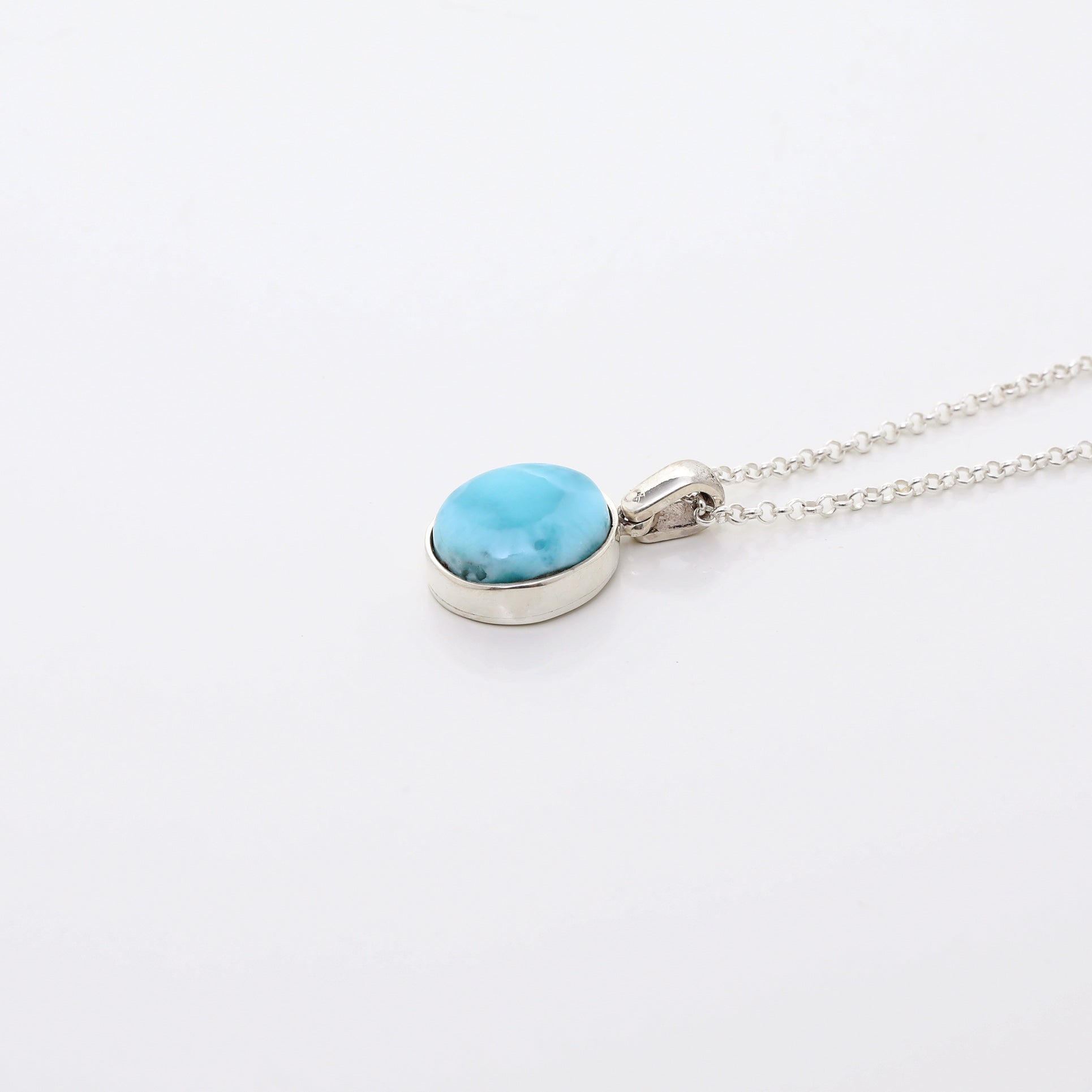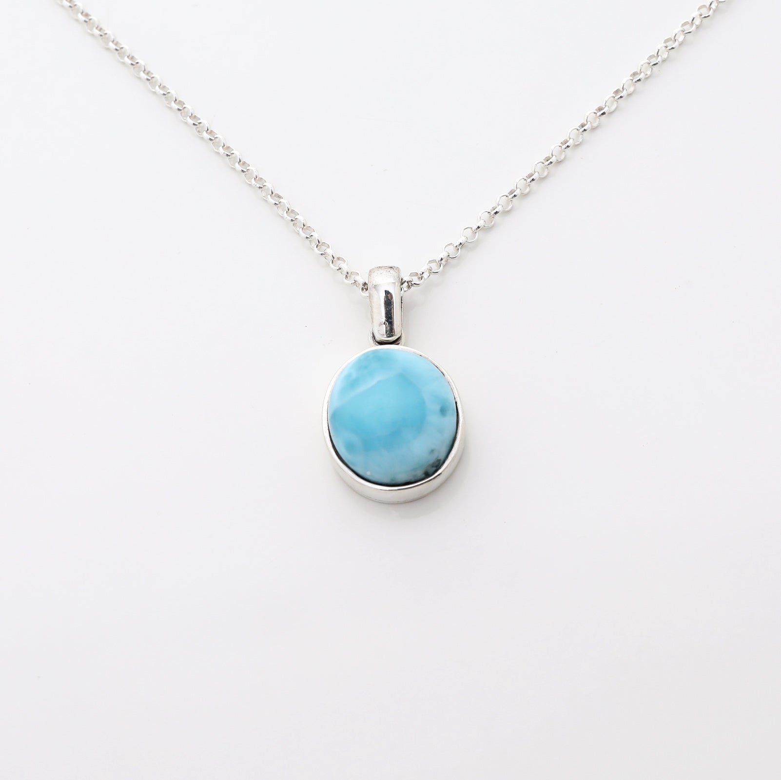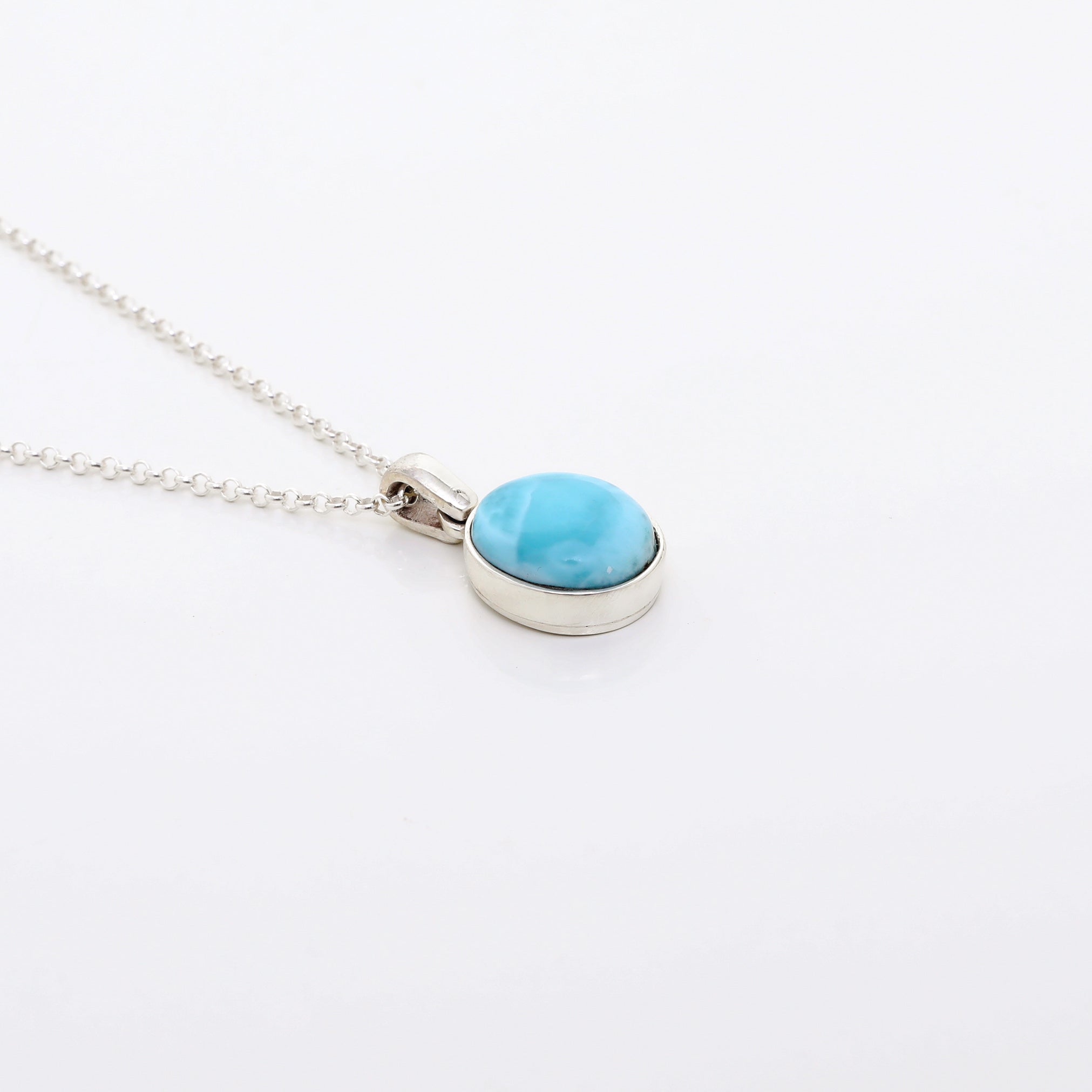 Let the tropical vibes of our Larimar Pendant Luella transport you to a sunny beach paradise! Made with genuine Larimar stone, this pendant brings a touch of Caribbean beauty to any outfit. Perfect for adding a playful and unique touch to your jewelry collection. (Beach not included.)