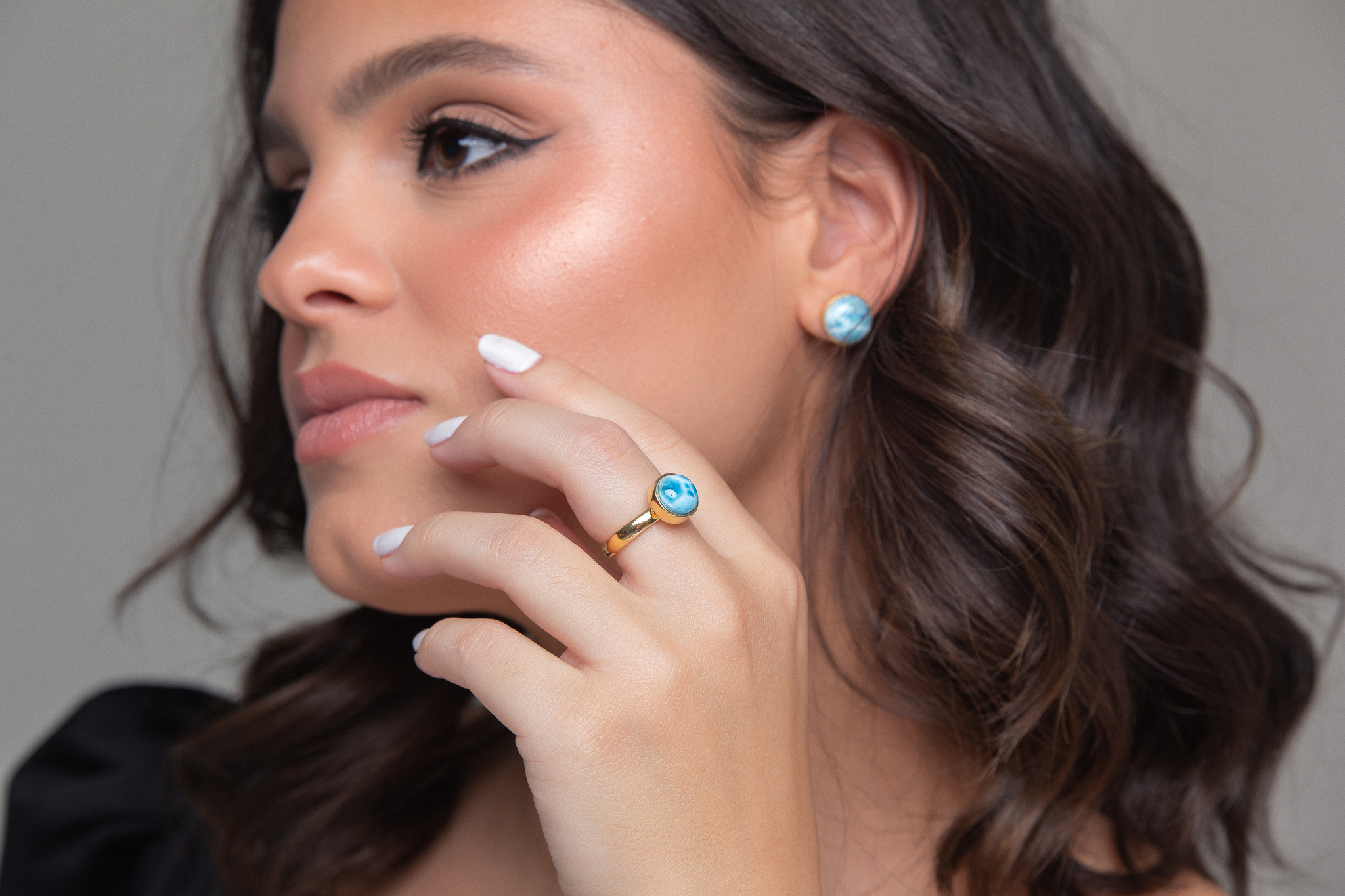 Gold vermeil can tolerate being wet, but we refrain from labeling it as waterproof due to the advised caution against prolonged submersion. To ensure the longevity of your Larimar jewelry, keep gold vermeil as dry as possible. While immediate water exposure may not have drastic effects, continuous chemical reactions over time can lead to tarnishing or a diminished shine.